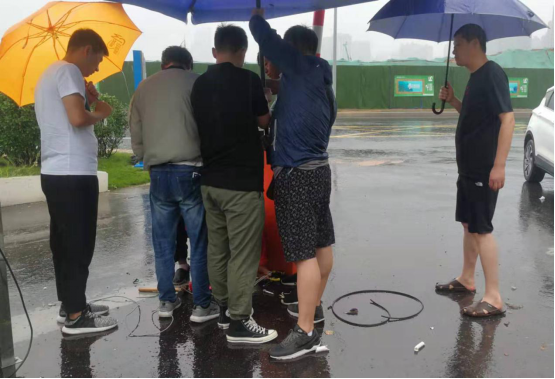 ? ? ? ? 此時“利奇馬”臺風(fēng)已經(jīng)開始影響濟南,而停車場的信息化工程,需要強電、弱電、手機信號優(yōu)化等一系列施工改造,以及視頻設(shè)備安裝為了確保出入口附近地面溝槽的安全,工作人員專門找來5把太陽傘遮擋雨水。然而大風(fēng)襲來,太陽傘瞬間被撕裂……